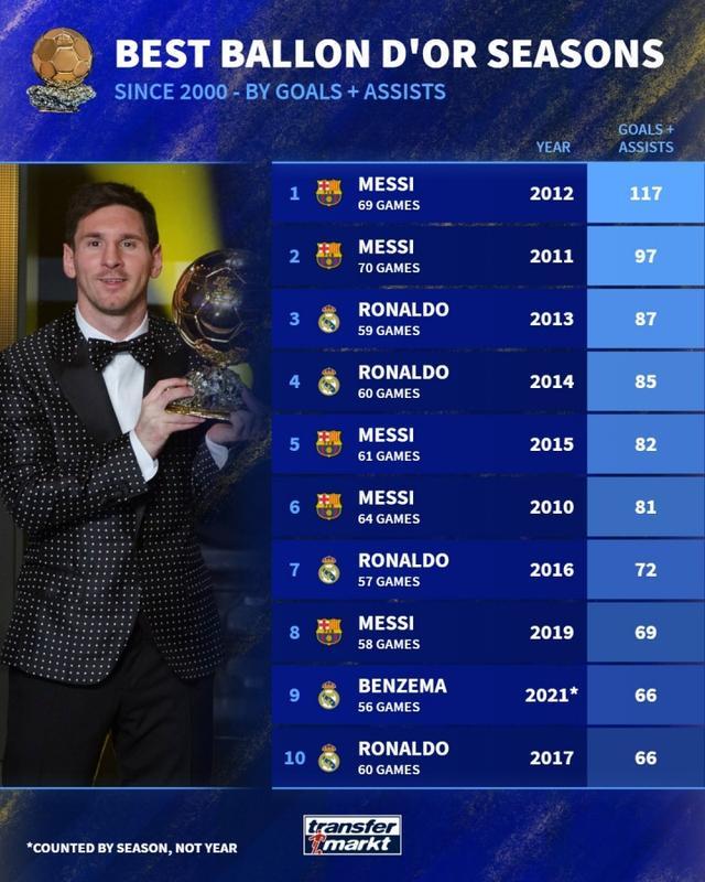 新千年:梅西在69场比赛中以117个进球排名第一的