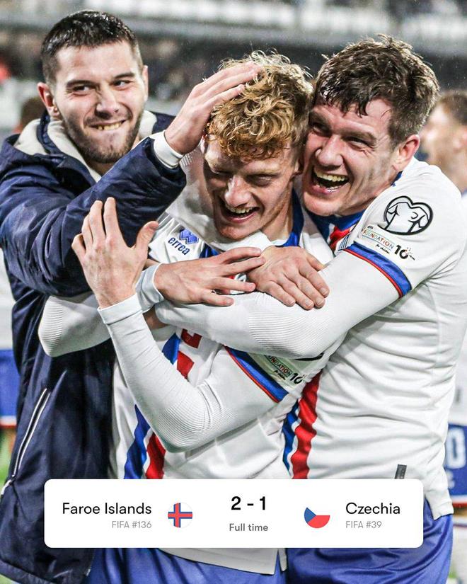 在这两周的国际比赛中,我们见证了一个又一个奇迹。佛得角历史性进军世界杯的前一天,在位于冰岛、挪威和英国之间的北大西洋托尔斯港,国际足联排名第136位的法罗群岛以2-1击败捷克,取得世预赛三连胜。两队世界排名相差97位,但终场哨声吹响时,巨人倒地,疯狂庆祝的却是法罗群岛球员。这不仅是法罗群岛足球史上的又一伟大成功,也让这个人口仅有5.5万的群岛仍然保持进军明年世界杯的理论上的可能性。法罗群岛由18个主要岛屿组成。据截至2025年6月的统计,法罗群岛人口5.49万人,土地面积1393平方公里。这这里地势崎岖,有峡湾和悬崖,植被稀疏。由于靠近北极圈,这些岛屿的冬季白天非常短。加上持续不断的降雨,首都托尔斯港的日照时间是世界上最短的,每年只有 840 小时。在这个群岛上,所有人口都无法容纳一个大足球场,但足球是他们最喜欢的运动。事实上,足球在法罗群岛很难发展。主要困难在于人口:岛上20岁至39岁的男性仅约7000人。就整个欧洲而言,人口数量已排在欧足联成员国之后的第四位,略高于直布罗陀、圣马力诺和列支敦士登。如今,法罗群岛仍然是丹麦王国的一部分,但具有高度自治权。由于地理原因,渔业和旅游业占总收入的大部分,但对于当地人来说,更重要的标志性产业是养羊业。法罗群岛的象征是一只雄伟的公羊。法罗群岛这个词的词源最初来自古挪威语“羊岛”。虽然人口只有5.5万,但这里的羊数量却超过8万只。每年300天的雨季和恶劣的地形使户外活动成为一种奢侈。而足球也已成为当地居民的共同语言。他们的顶级联赛由 10 支球队组成,每个赛季互相交锋 3 次。 “有时我们必须乘坐两个小时的渡轮才能打一场比赛,”曾在法罗群岛联赛踢球和训练的前德国U21国脚辛德勒说道。 “我认为这对任何球员来说都是一次难忘的经历。”每年一月到四月,法罗群岛都会有冷暖气浪远离陆地,造成大风天气,联赛也会在这段时间暂停。但队员们并没有因此而放弃训练。他们坚持户外训练,但这是不是因为他们想控制自己的情绪。这只是因为没有办法设置避雨所。 “问题不是冷,而是风。”辛德勒解释说:“你只要搭起一个遮阳篷,风一吹,它就吹起来。” “但我们的球员已经习惯了,他们会继续在刮风下雨的天气里训练。”由于大风,联盟遭受了重创,因为有一个特殊的规则:在死球的情况下,需要第二名球员走球。这个规则并不常用,但大风天确实是常有的事。严格来说,这里的足球联赛并不完全职业化。大多数球员和教练还必须从事其他兼职工作。辛德勒说:“我们的团队中有建筑工人、渔民以及从事绵羊和鲑鱼养殖的成员。”每一次国际比赛,全体居民都会一起观看。 “这里的人们有强烈的民族自豪感和真正的团结感,因为通常每个人都知道1988年,法罗群岛加入国际足联,1990年加入欧洲足联。1990年9月12日,在收银台举行的首场正式国际比赛中,法罗群岛以1-0击败强敌奥地利。这场比赛实际上是在瑞典的兰斯克鲁纳进行的——当时法罗群岛还没有有草皮的足球场。因此,这一成就也被称为“兰斯克鲁纳奇迹”。 进球的是托基尔·尼尔森 (Tokir Nilsson),他是一名国际象棋棋手,也是当地一家建筑公司的推销员。正是这场比赛激发了当地民众对足球的热烈兴趣,而首场主教练古德劳格森的赛前演讲被球迷视为经典并被传唱——“想想奥地利群岛的骄傲,你的国旗。”给你,不要浪费,不要留下终生的遗憾!这并不是他们第一次焦虑:2014年11月14日,法罗群岛在2016年欧洲杯预选赛中以1-0击败主队希腊。 《卫报》称这场胜利为“重大胜利”“FIFA历史上的爆冷”;当时,希腊排名第18位,法罗群岛排名第187位,差距169位。在这场史诗般的愤怒之后的第二天,担任希腊国家队主教练不到半年的拉涅利就被足协解雇了。这场失利让他的教练生涯陷入了最低点。8个月后,他终于在莱斯特城找到了新工作,但英国媒体仍然嘲笑他 “不明白为什么应该任命一个带领希腊前往法罗群岛的人担任主教练。”当然,之后发生的事情就是另一个传奇故事了。 2015年6月13日,法罗群岛在第二场对阵希腊的比赛中再次以2-1击败对手。这两项成功已经使法罗群岛的国际足联排名飙升了100多位:从第187位上升到第74位。在经历这两次挫折之前, 法罗群岛足球几乎没有引起人们的关注。 2009年至2014年间,他们在35场比赛中只赢了2场,就这样输给了泰国U-21国家队。但他们已经积累了很多经验并努力成长。 2021年的统计数据显示,本地注册玩家人数达到5694人,几乎占总人数的10%;如果算上未注册的玩家,总数超过8000人。 200年前,法罗群岛足协要求所有俱乐部都必须有U21梯队,现在几乎所有联赛球员都是由U21梯队培养的。代表队成员大部分来自法罗群岛国内联赛,也有部分遍布冰岛、丹麦、波兰和斯洛文尼亚联赛。如今,他们正与2026年世界杯欧洲区预选赛进行角逐,仍然保持出线的希望。欧足联有16个世界杯参赛资格。 54支球队分为12个小组。每组第一名直接晋级世界杯,而12个小组第二名和欧足联前四名国家联赛小组将通过附加赛决出最后四个席位。克罗地亚、捷克、黑山、法罗群岛和直布罗陀分在L组。在这个小组中,克罗地亚无疑是最大的热门。前东欧劲旅捷克也是预选赛的有力竞争者。经验丰富的武齐尼奇和约维蒂奇的黑山在国际足联排名中比法罗群岛高出了50多位。