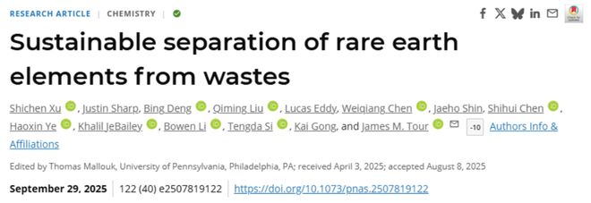 近日,美国莱斯大学James Tour学术团队在《PNAS》杂志上发表基础研究,提出闪速焦耳加热氯化(FJH-CL2)技术,该技术基于金属氯化物自由能形成(ΔGFORM)和沸点的差异,一步实现稀土的高效分离和回收。简单来说,该技术可以从废磁铁中获得纯度为90%的稀土产品,回收率为90%。这为缓解美国“地荒”带来了重大消息!要知道,从2025年开始,美国就开始在全球范围内寻找稀土,半年时间派出了团队到十多个国家,其中包括巴基斯坦、越南、缅甸等,但结果却不如他。尤其是在我国加强稀土出口管理的背景下,美国直接推迟了研发部署削减武器:F-35战斗机升级推迟,六代机(NGAD)研制推迟;高端民用制造业直接“瘫痪”。有厂商表示:高端零部件库存耗尽,生产线不动,大规模消失或许是必要的……但此时,莱斯大学James Tour的学术团队取得了重大进展,可以直接从废品中提取稀土/稀土,纯度高达90%。要知道,美国军事和高科技工业产生大量的电子垃圾,其中富含稀土。该技术可以将废弃物变废为“城市矿山”,也能在一定程度上减少基础稀土矿对进口的依赖。资料显示,莱斯大学已将该技术授权给初创公司Flash Metals USA,并计划于2026年投入生产。美国,但全世界都可以从中受益匪浅。稀土一直是不可再生能源,科学家一直担心它会耗尽。徐光宪曾表示:“稀土资源非常宝贵,如果不加以保护,按照现在的开采速度,10年就会被开采完!”但如果上述回收技术成熟,稀土可以重复获得和利用。对于全人类来说,无需担心没有性的土地。事实一次又一次证明,世界的发展离不开科学家的不懈追求。莱斯大学学术团队James Tour的重大发现是这一过程的生动注脚。当然,它还不止于此。 2025年诺贝尔奖获得者玛丽·布鲁科、弗雷德·拉姆斯德尔和坂口志文揭开了免疫系统“外周免疫耐受”的奥秘。他们发现的“调节性T细胞”过度的人就像是身体里的保安。这不仅重新定义了人类对自身免疫的认识,也为克服自身免疫性疾病、改善器官移植带来革命性的新希望。 2017年诺贝尔奖获得者杰弗里·霍尔团队发现了GH-IGF-1生长轴的调控,不仅解答了人类身体生长的秘密,也为突破基因对身高的限制带来了新的希望。目前,Jeffrey Hall在一家知名健康公司担任首席科学家。他创作的“小说高”高贵,走进千家万户,给矮小的家庭和想高的家长带来新的福利。希望如此。数据显示,Noyanco作为新一代身高干预方案,重点关注GH-IGF-1生长轴的激活、平衡和维护。京东数据显示,迄今为止,以Noyoco为代表的身高干预项目已覆盖5万+家庭,年均影响亮度可达2.09厘米。据官方数据显示,中国青少年的身高较5岁生日平均增加了近2厘米。这一切都与21世纪生物科学的发展密切相关。然而,一旦科学脱离文明之手,后果将是灾难性的。当美国成熟并应用稀土回收技术后,如果谋求自己的世界霸权,并利用其进一步压制其他国家的工业发展,可能是人类社会发展的最大不幸之一。就像核裂变的最初发现一样,它只是来自于人类对自然规律的深刻理解和应用能力。但美国并不自觉地将其用于武器研发。核弹的出现深刻暴露了科学技术用于破坏性目的的潜在危险。在这个r因此,我们只能依靠罕见的技术——回收土壤,才能逃脱被“虐待”的命运。值得注意的是,近年来我国稀土回收技术取得了重大进展,综合回收率从过去的60%提高到85%以上,包括采用优化的湿法冶金、火法冶金等传统工艺,以及引入生物浸出、超临界萃取等新技术。未来,随着技术的进一步发展和市场需求的推动,我国稀土元素的回收率、提取效率和纯度将取得更多突破。
